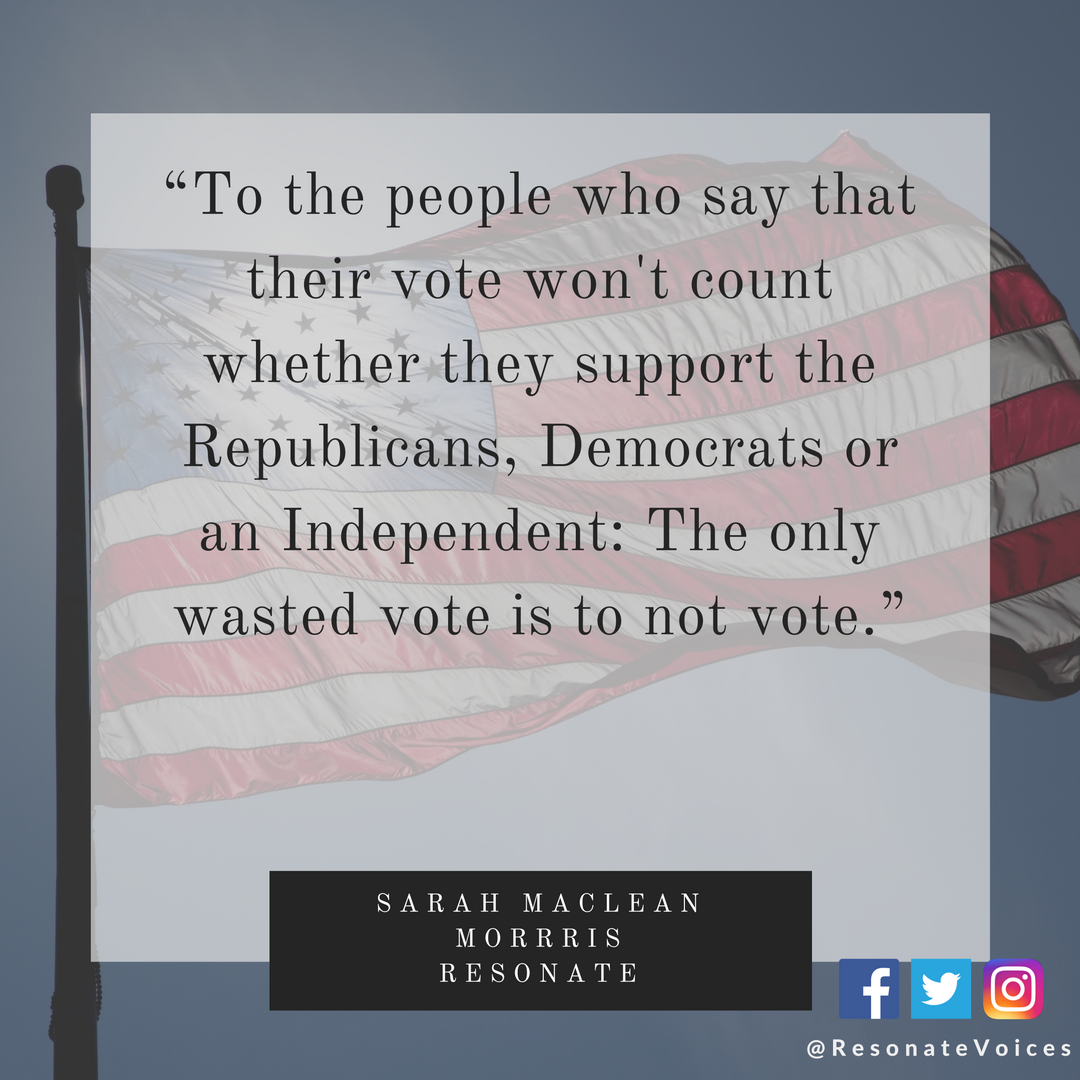 “To the people who say that their vote won’t count whether they support the Republicans, Democrats or an Independent: The only wasted vote is to not vote.” – Sarah Maclean Morris