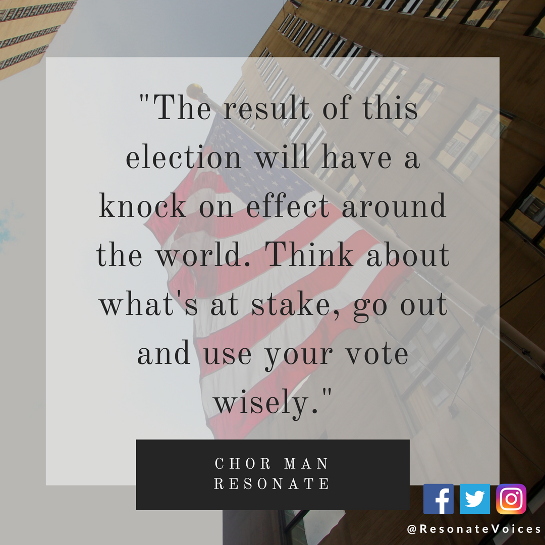 “The result of this election will have a knock-on effect around the world. Think about what’s at stake, go out and use your vote wisely.” – Chor Man