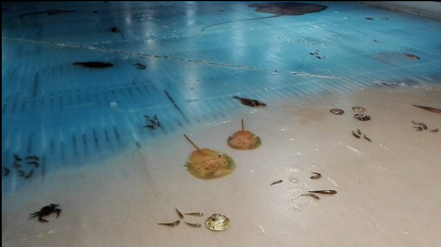 The attraction displayed the thousands of dead fish in the ice of its ice rink, allowing skaters to glide over the frozen fish.