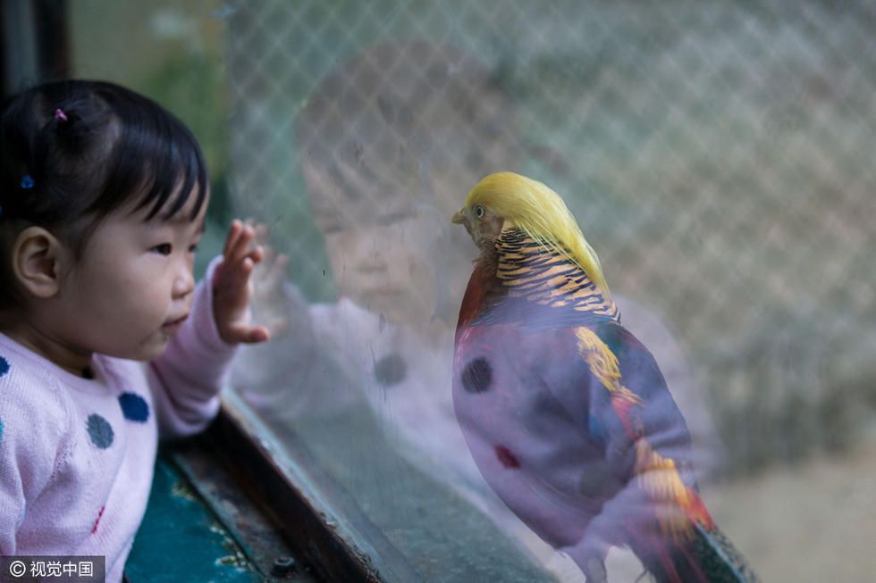 Consequently, the bird has become a hot spot in the Hangzhou Safari Park, Zhejiang province after a number of tourists are visiting the zoo just to see the brightly coloured gold and red bird.