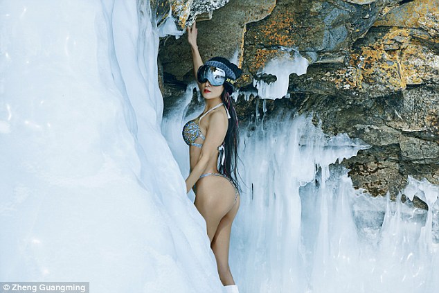 In the pictures that were shared on Weibo, Liu is seen wearing nothing but a bikini and a pair of ski goggles.
