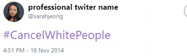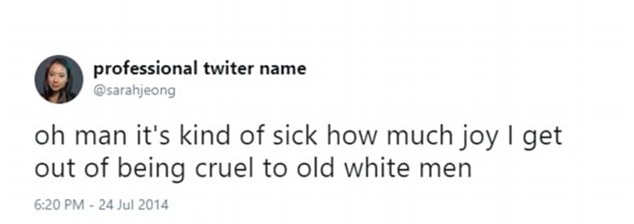 Tweets including “#CancelWhitePeople”, “white men are bullshit” and “it’s kind of sick how much joy I get out of being cruel old white men,” landed Jeong in hot water.