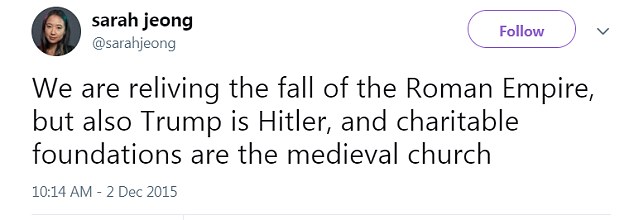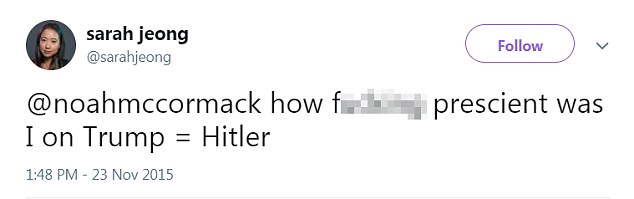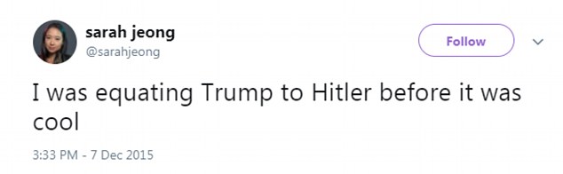 “I was equating Trump to Hitler before it as cool,” Jeong tweeted in 2015.