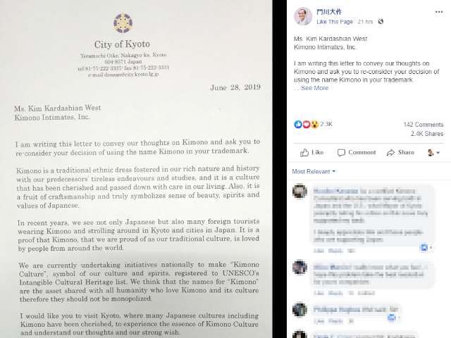 “I am writing this letter to convey our thoughts on Kimono and ask you to re-consider your decision of using the name Kimono in your trademark,” Kadokawa wrote. “Kimono is a traditional ethnic dress fostered in our rich nature and history with our predecessors’ tireless endeavors and studies, and it is a culture that has been cherished and passed down with care in our living.”
