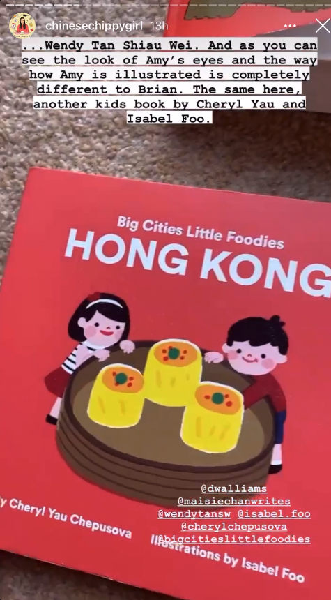 ‘Big Cities Little Foodies Hong Kong’ by Cheryl Yau Chepusova is also shown by the social media user. The cover again shows East Asian characters who are not drawn with racist features.