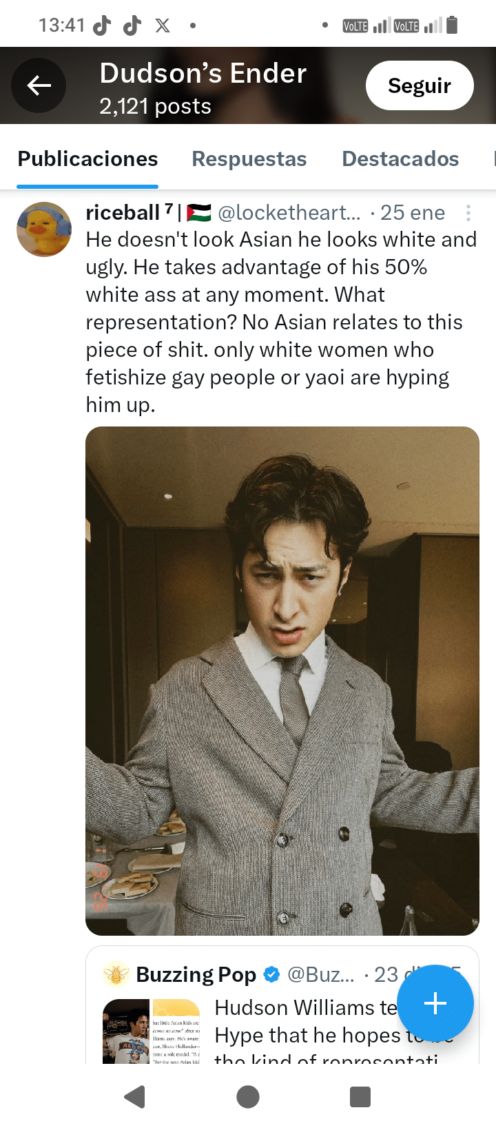 Williams’s co-star, François Arnaud, has faced a similar smear campaign, being labeled an “enemy” of the favored fan pairing. But for Williams, the attacks take on a distinctly racialized tone. Some users have used his “Korean upbringing” as a weaponized explanation for alleged homophobia, while others have openly cheered when he experiences racism, viewing it as a just punishment for disrupting their desired narrative.