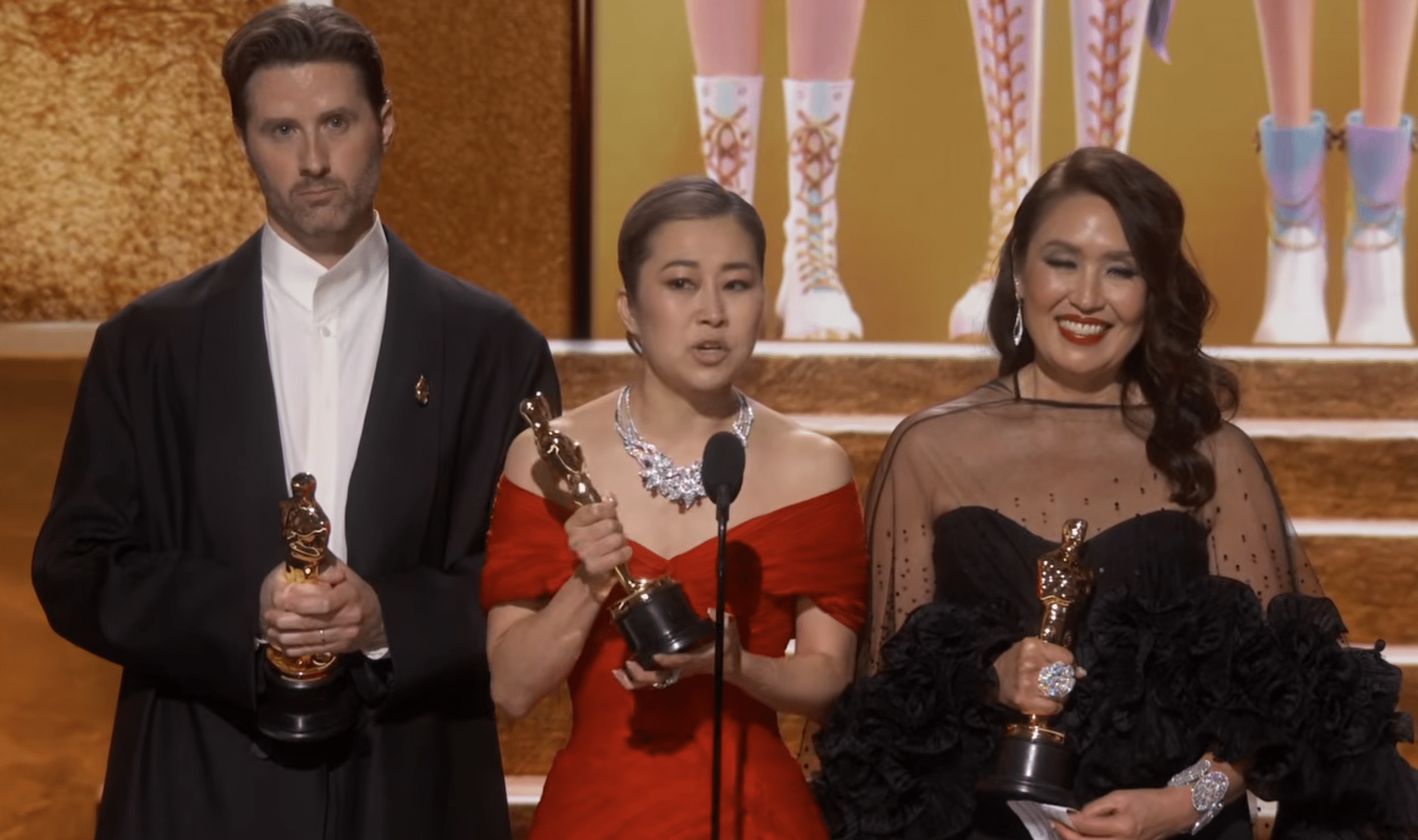 The film made history on Sunday night as the first production led by creators of South Korean descent to win